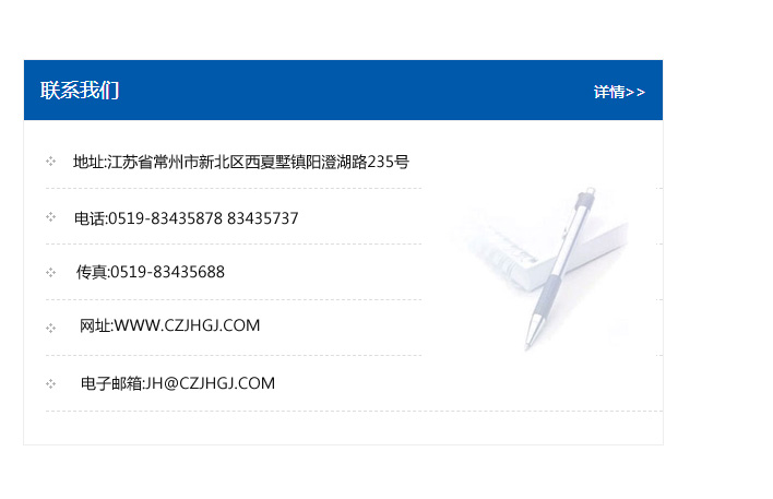 傳真:0519-83435688    郵編:213135    網址:WWW.czjhgj_com.anjinda.com    電子郵箱:JH@czjhgj_com.anjinda.com
